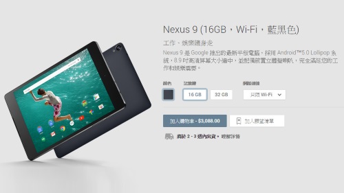 Google手腳認真快,上週中才發表的Nexus 9已經在香港Google Play現身!